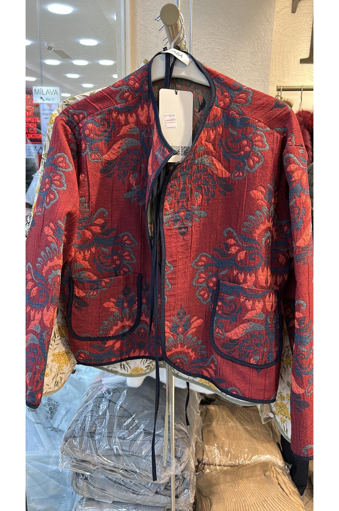 Liva Etnik Desenli Jakarlı Ceket - Bordo