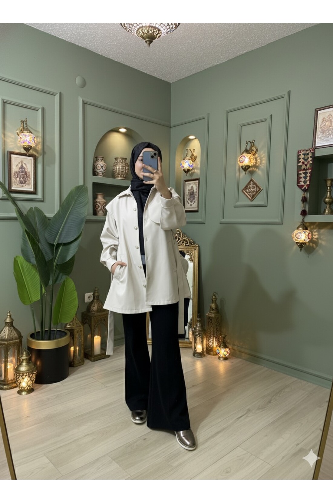 Ön düğmeli, yan cepli bondit kumaş gömlek Trenç.
