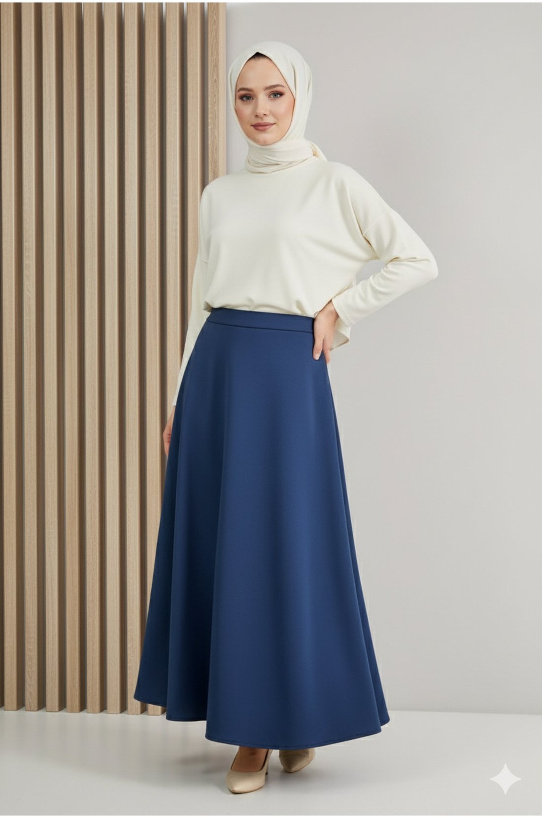 Beli Lastikli Scuba Kloş Etek Lacivert