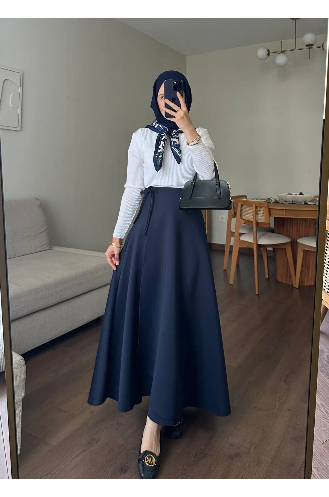 Bu özellik, kullanıcıların hızlı bir şekilde giyinip çıkmalarına olanak tanır.  Etek, farklı beden seçenekleri ile (36, 38, 40, 42) her vücut tipine uygun bir alternatif sunar.