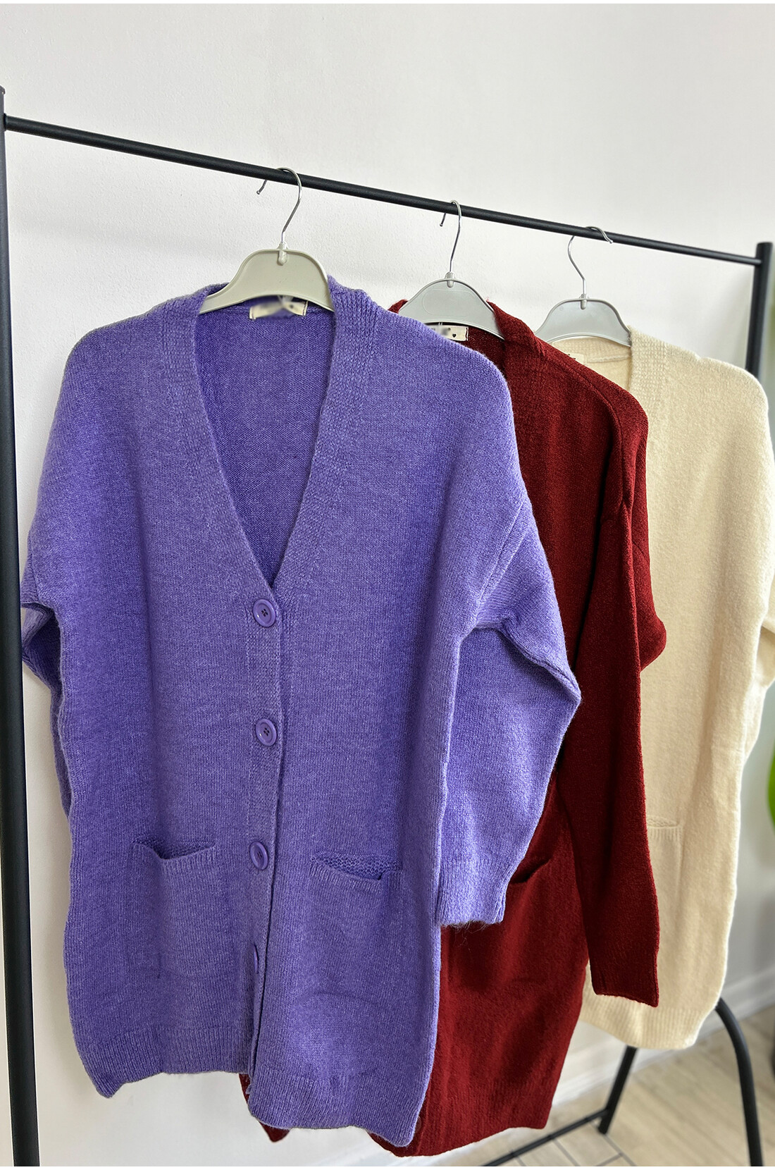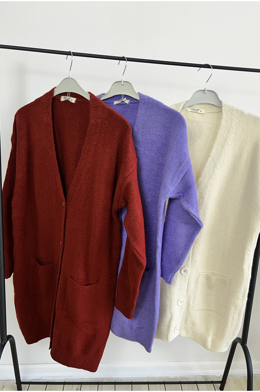 Rahat ve şık tarzıyla dolabınızın vazgeçilmez parçası olacak bu krem renkli uzun hırka, soğuk günlerde hem sıcak tutar hem de stilinize modern bir dokunuş katar. Düğme detayları ve ön cepleri ile işlevselliği arttırılmıştır. Yumuşak dokusu ile konforu ön planda tutan bu hırka, hem günlük kombinlerinizde hem de evde rahatlıkla kullanabileceğiniz bir parça. Pastel tonlardaki bu hırka, özellikle sonbahar ve kış aylarında şıklığınızın tamamlayıcısı olacak.