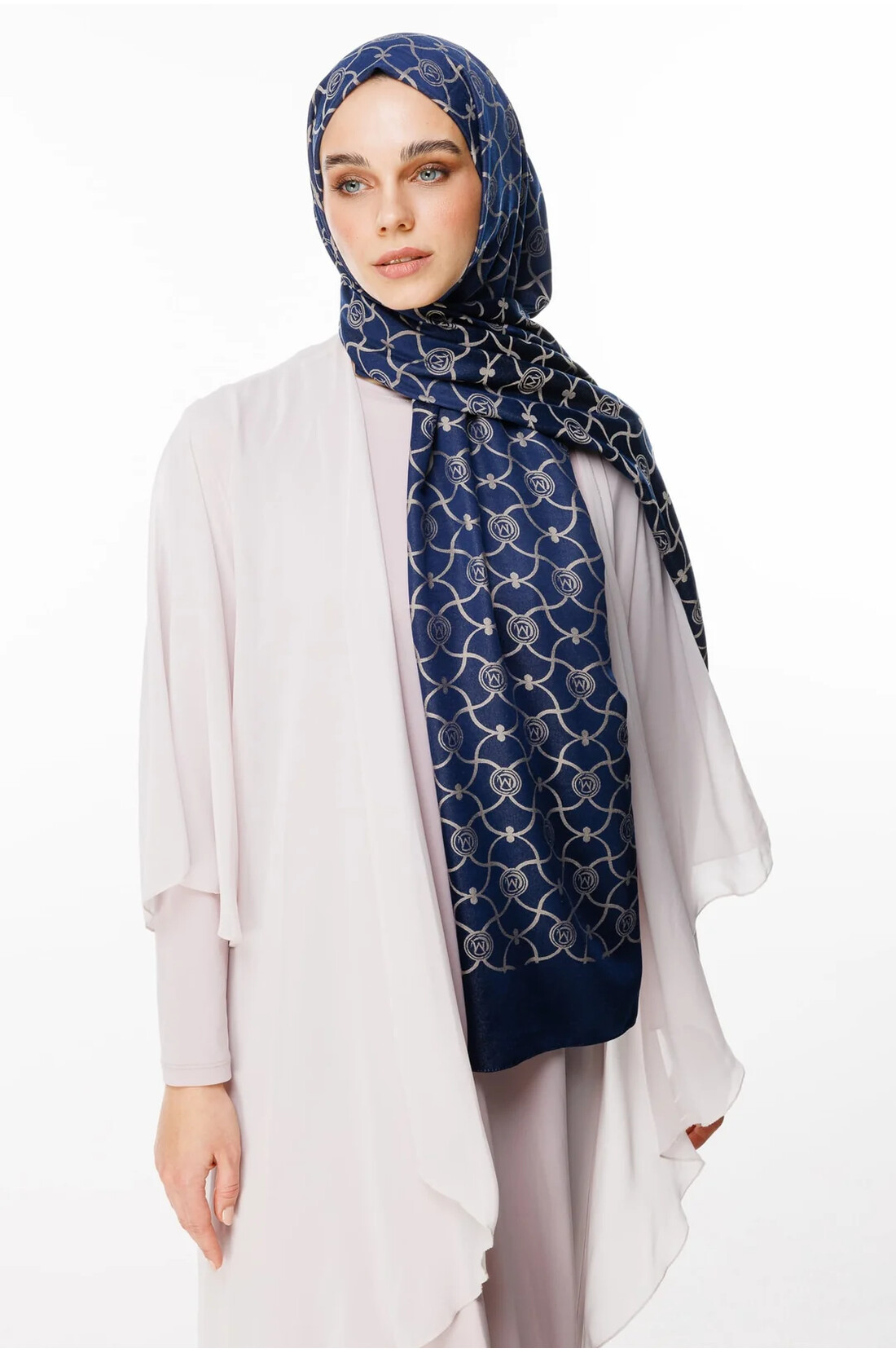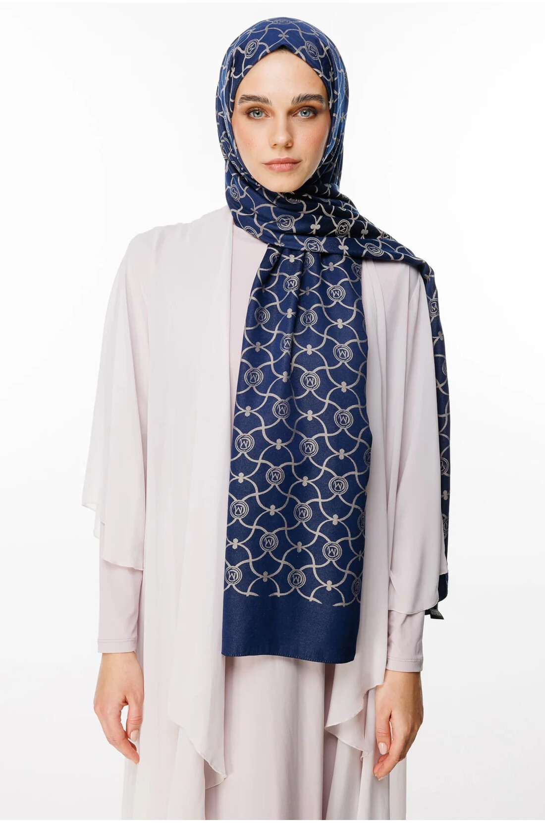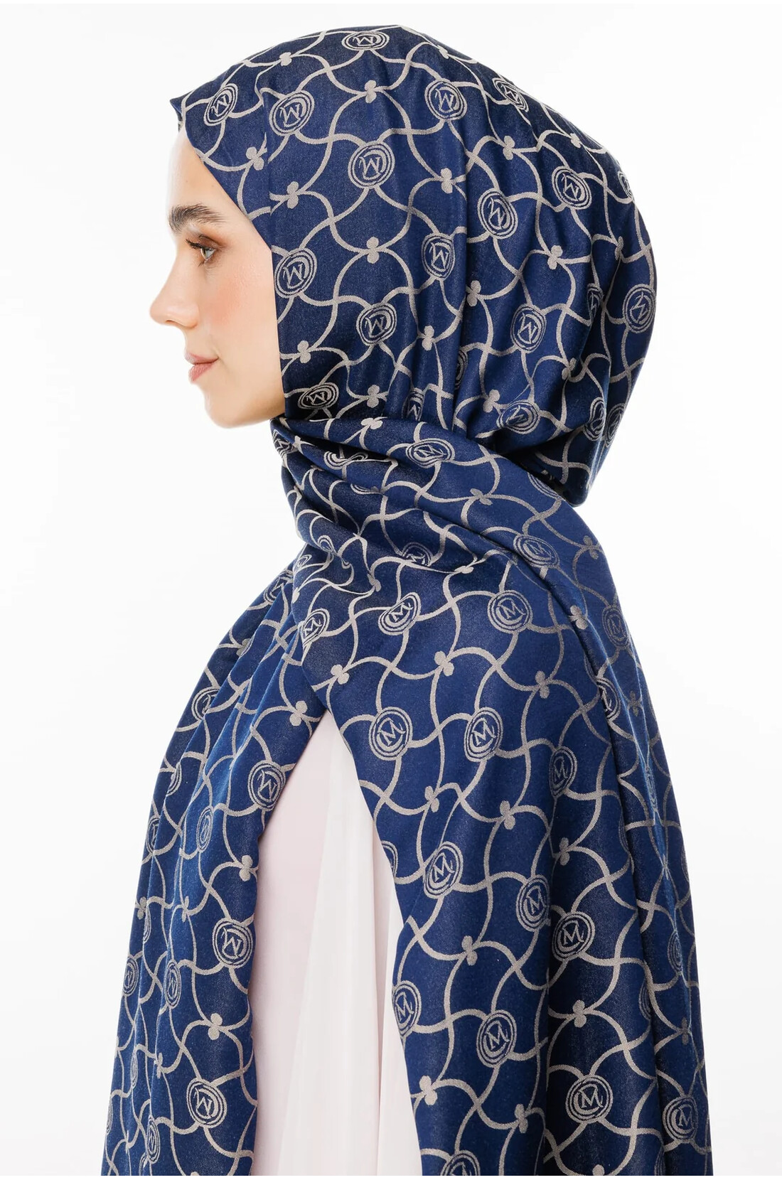 Marrakech Desen Çift Taraflı Şal Lacivert - Bej