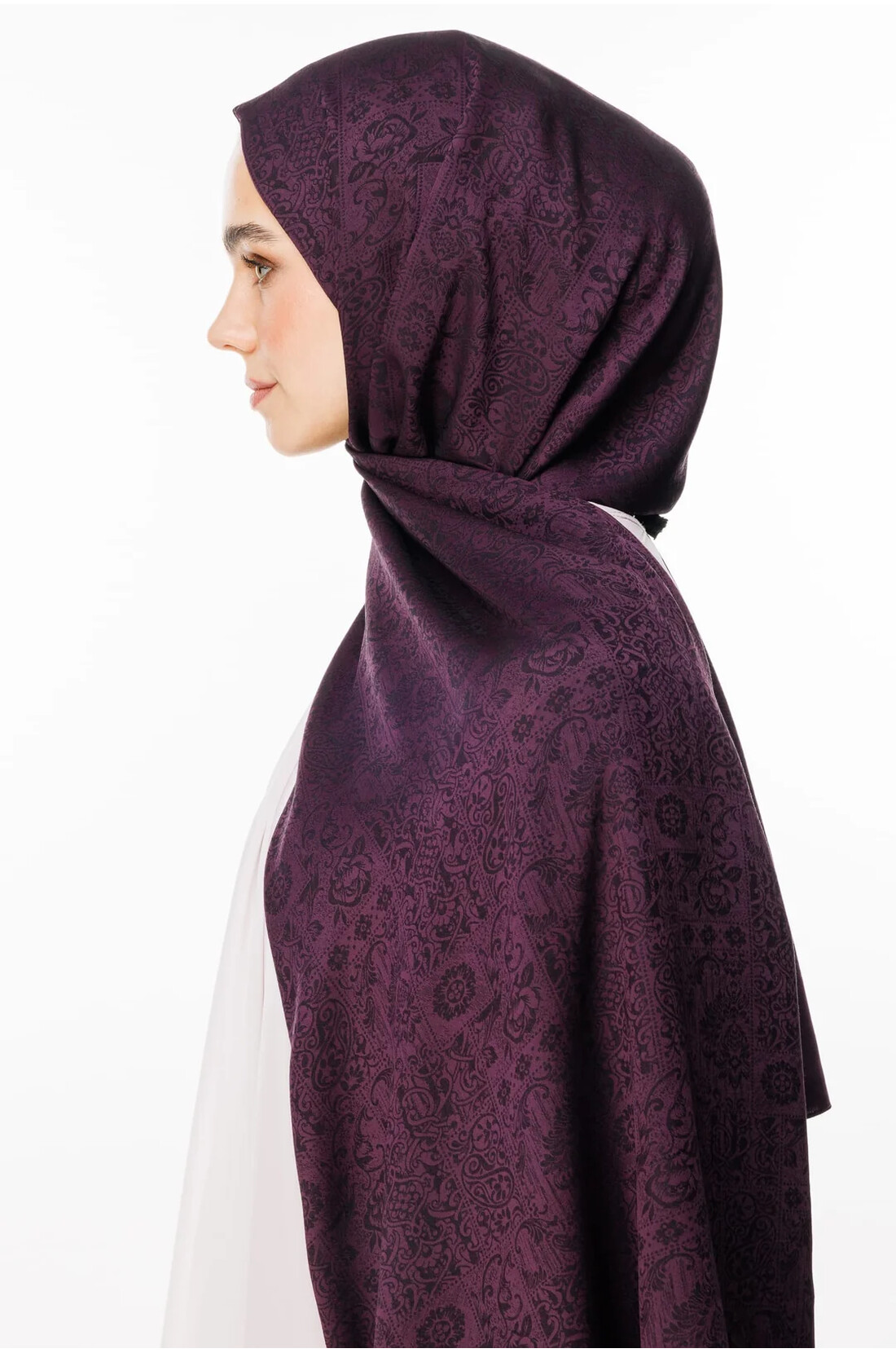 Henna Desen Çift Taraflı Şal Mor - Siyah