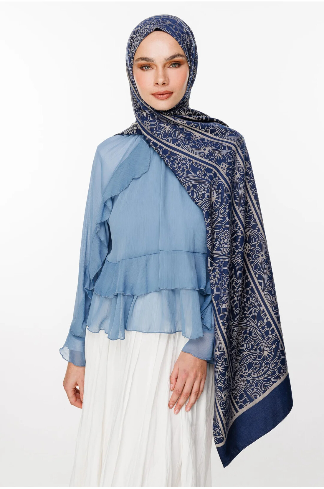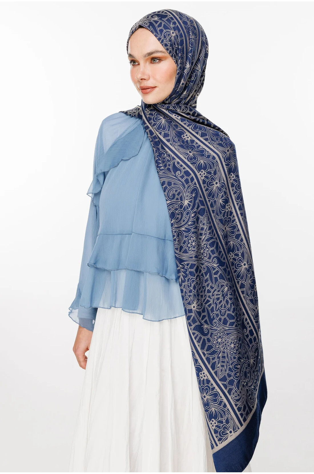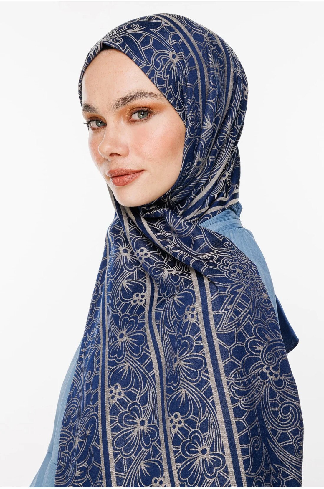 Lavin Desen Çift Taraflı Şal Lacivert - Bej